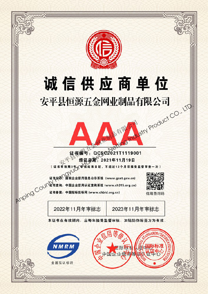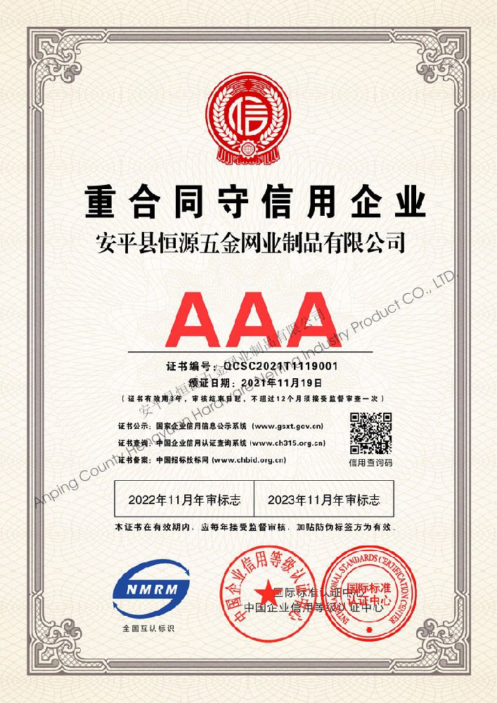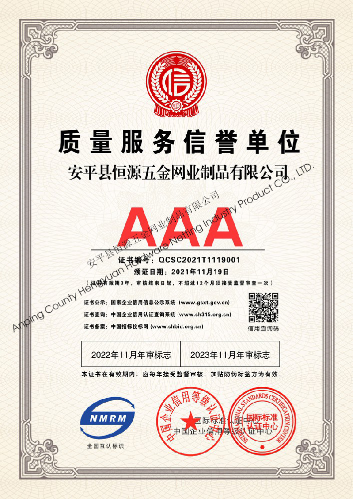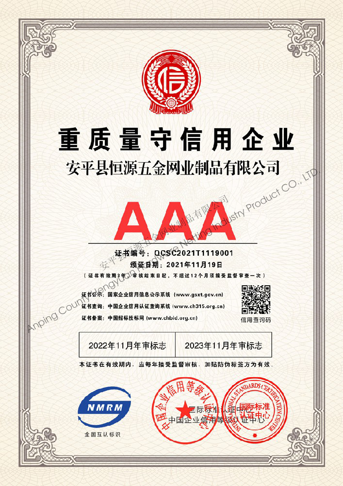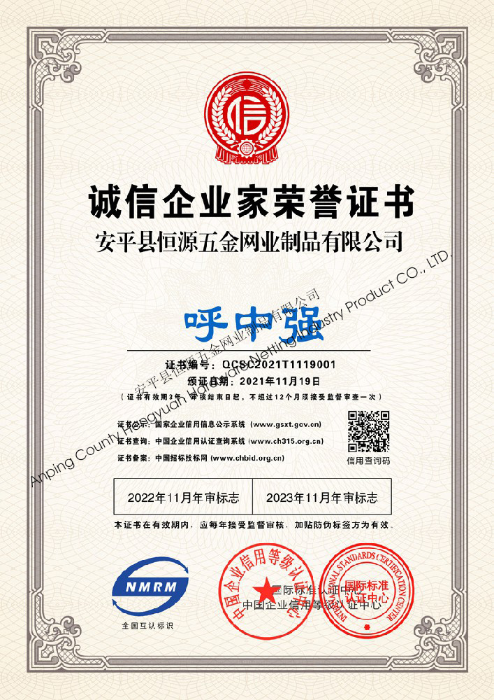 多年來,安平縣恒源五金網(wǎng)業(yè)制品有限公司堅(jiān)持“科技興企、質(zhì)量立業(yè)”的經(jīng)營理念和“誠心為本、客戶至上”的合作宗旨,優(yōu)化生產(chǎn)工藝,打造優(yōu)質(zhì)產(chǎn)品,提供完善的服務(wù),受到國內(nèi)外客戶的一致好評,產(chǎn)品行銷全國各地,并出口美國、德國、韓國、日本、臺(tái)灣等國家和地區(qū)。